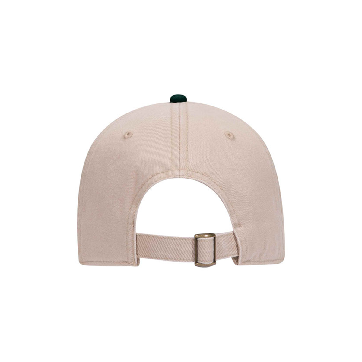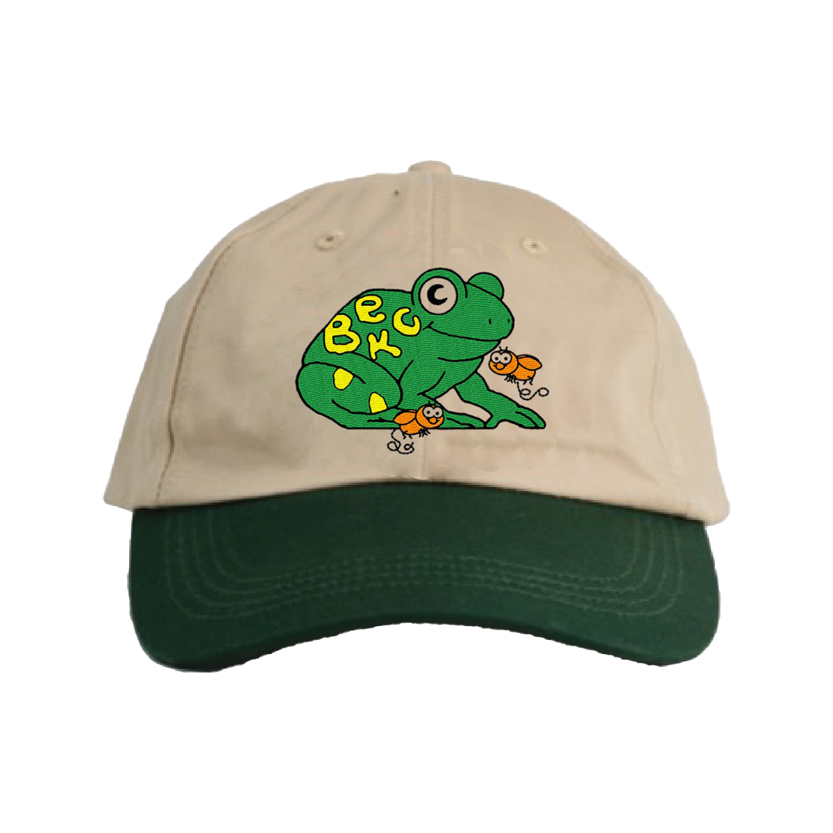 6 panel cap in Khaki / Forest Green featuring the Beck frog graphic embroidered on front and adjustable strap with a metal buckle on the back.